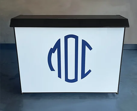 Customize our commercial portable bars with full-color graphics & laminates to personalize a client’s special day, add a company logo, promote a product launch, or match interior decor.