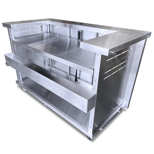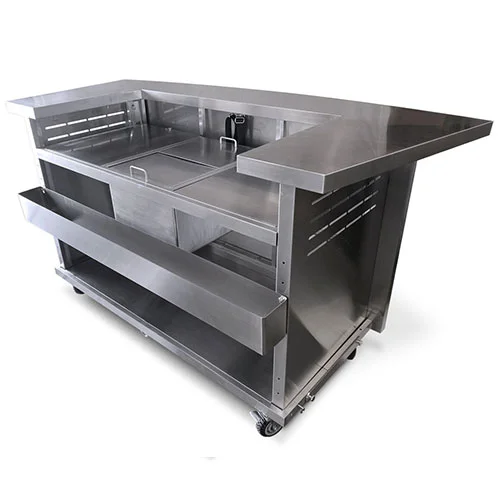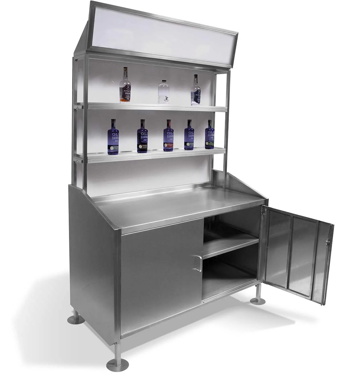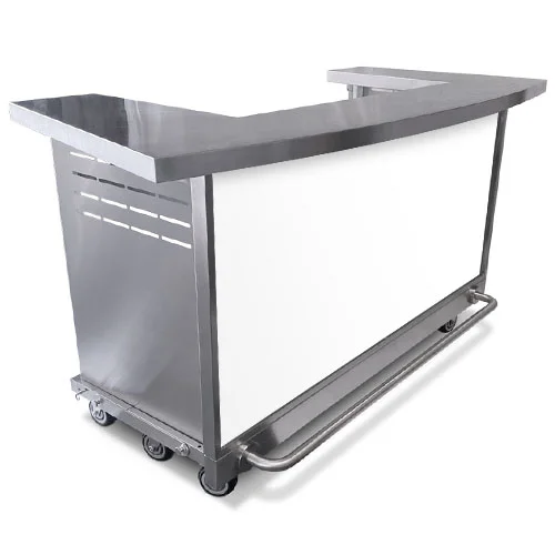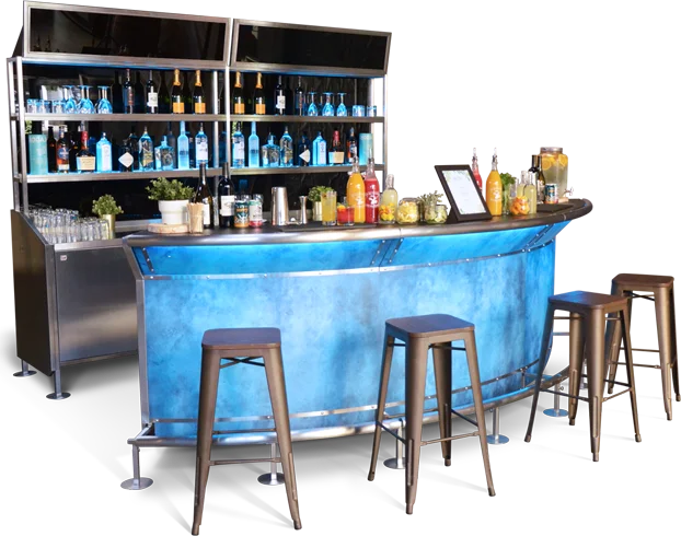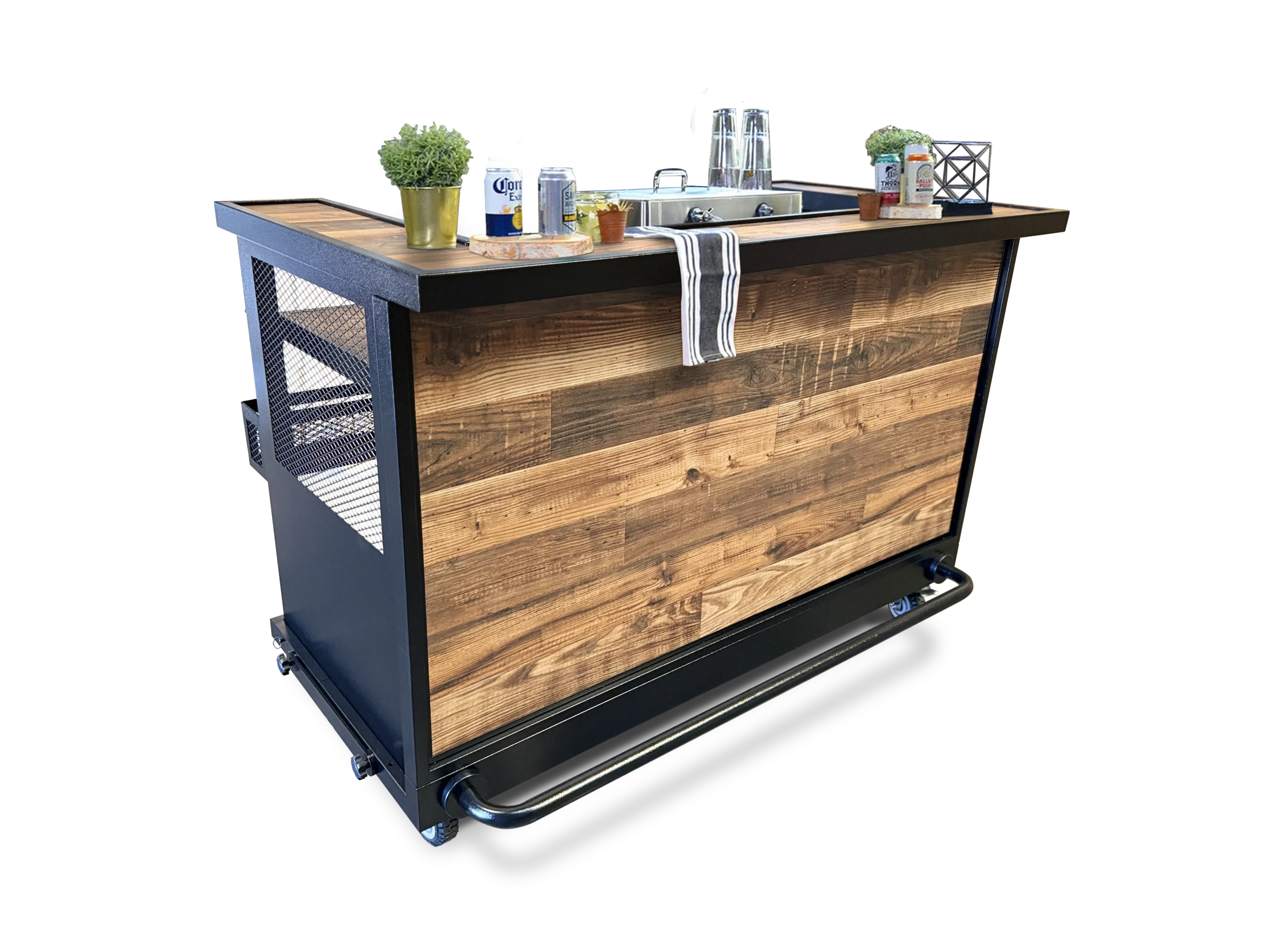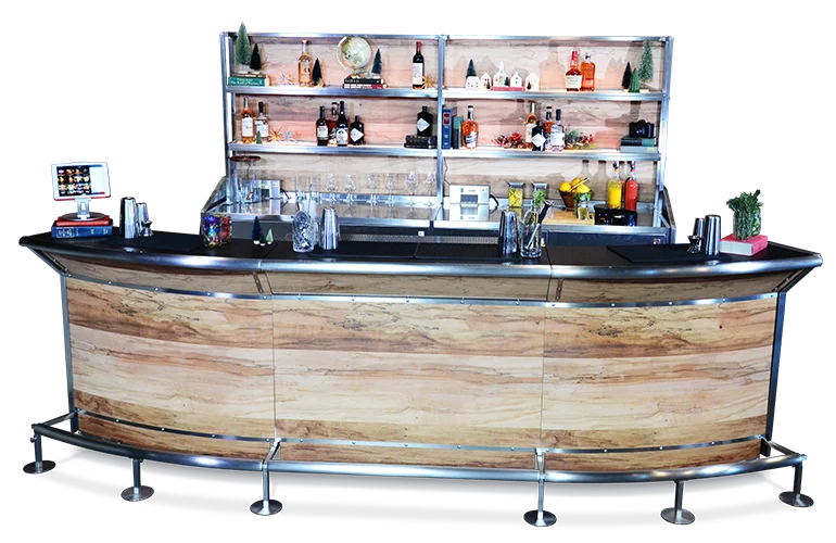 Bars from The Portable Bar Company include popular bar features including Ice bins, cutting boards, and speed rails There are also foldable shelving, interchangeable panels, and other handy features to make your staff’s job easier, so they can focus on what truly matters — your guests.