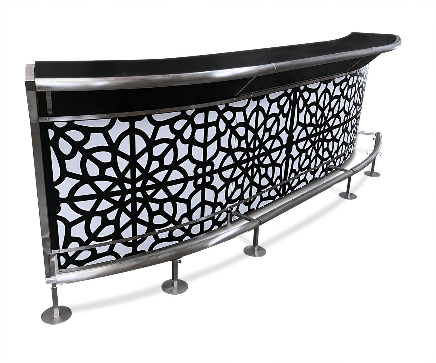 The white panels on the Illuminated Slightly Curved Bar make it easy to customize the bar for events. Work with your local printer to create large custom vinyl decals with event names, guests of honor names, and more.