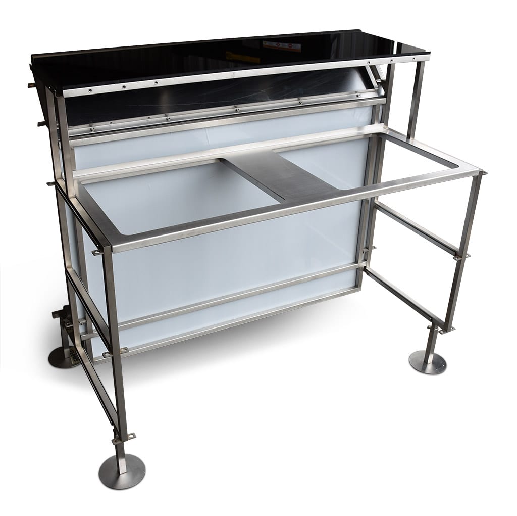 Ice bin’s that are built into the bar can be purchased with an additional middle accessory shelf.