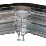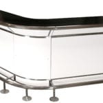 - 1 60 degree corner Bar Segment w/ black acrylic counter, white panels, 2 stainless steel working shelves and a stainless steel foot rest.