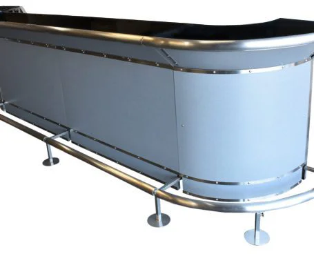 Flash Bar U-Shape Polished Silver laminate Shape: 2 Straights, 2 90 Corners (13ft 4in U-Shape) Exterior: ACP Panels in Polished Silver laminate Customize similar product/s below The Custom Private Event Bar From: $11,489.50 Add to Order / Quote Compare View Comparison Inquire about this setup Call us at 877-959-4682from Mon-Fri, 8am-3pm PST to inquire about this product. Or Fill out the form belowName*Email* PhoneShipping ZIP Code ZIP Code Message*CAPTCHACommentsThis field is for validation purposes and should be left unchanged.