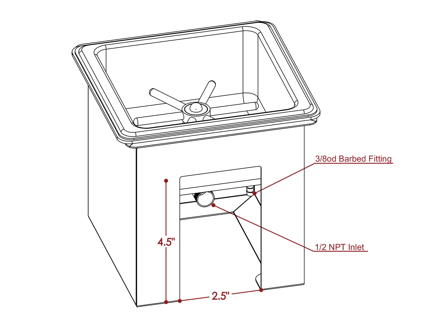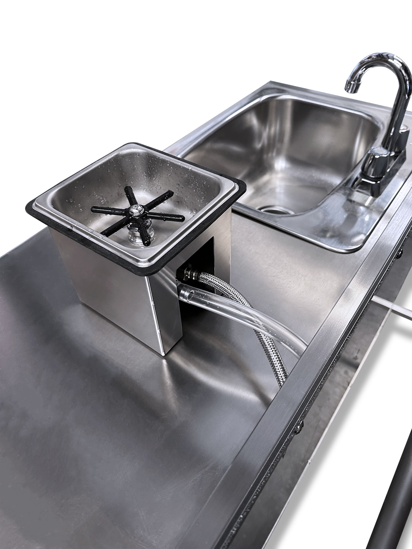 - Stainless Steel Glass Rinser that accommodates glasses up to 4″ in diameter