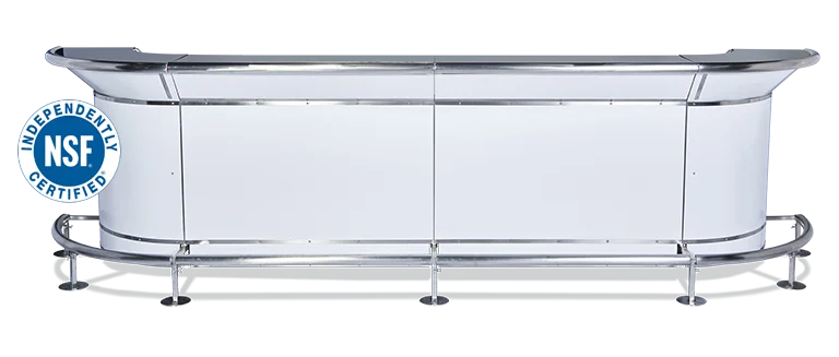 Which makes it easy to clean and sanitize. It also means that you can start with a straight or circular segment and build onto your bar later, allowing your bar to grow as your business grows.