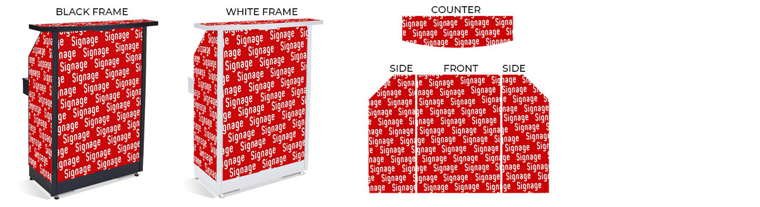 We can print on all 4 acrylic panels of your portable bar. There are some restrictions when printing on black acrylic and laminate panels. Please send us your artwork and options you are interested in and we can help