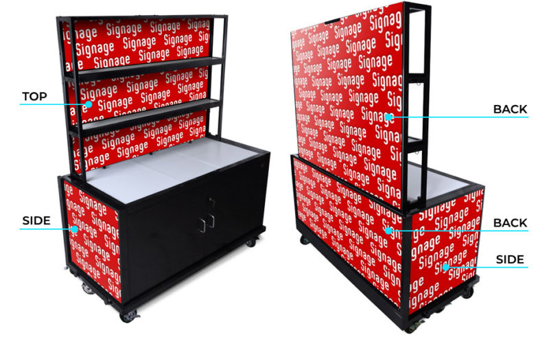 We can print on all 5 acrylic panel sides of your portable back bar.To expedite the process, you can upload print ready artwork when placing your order or send it directly to sales@theportablebarcompany.com. Once received one of our sales representatives will contact you to verify the custom artwork file details.