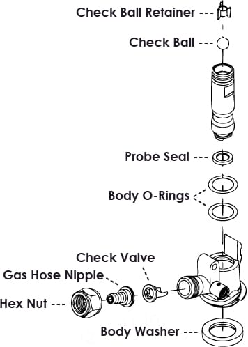 - Keg coupler design includes a 55-psi pressure relief valve that allows over-pressurized gas to escape before it enters the keg