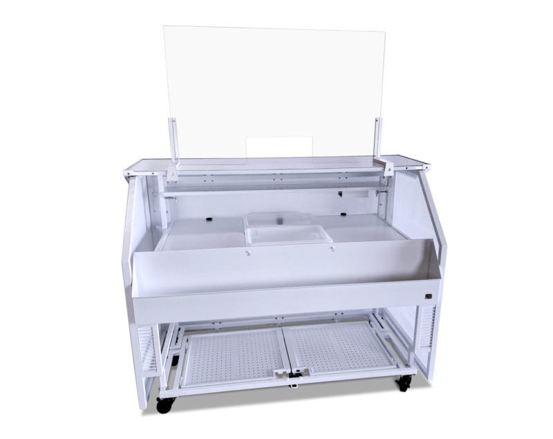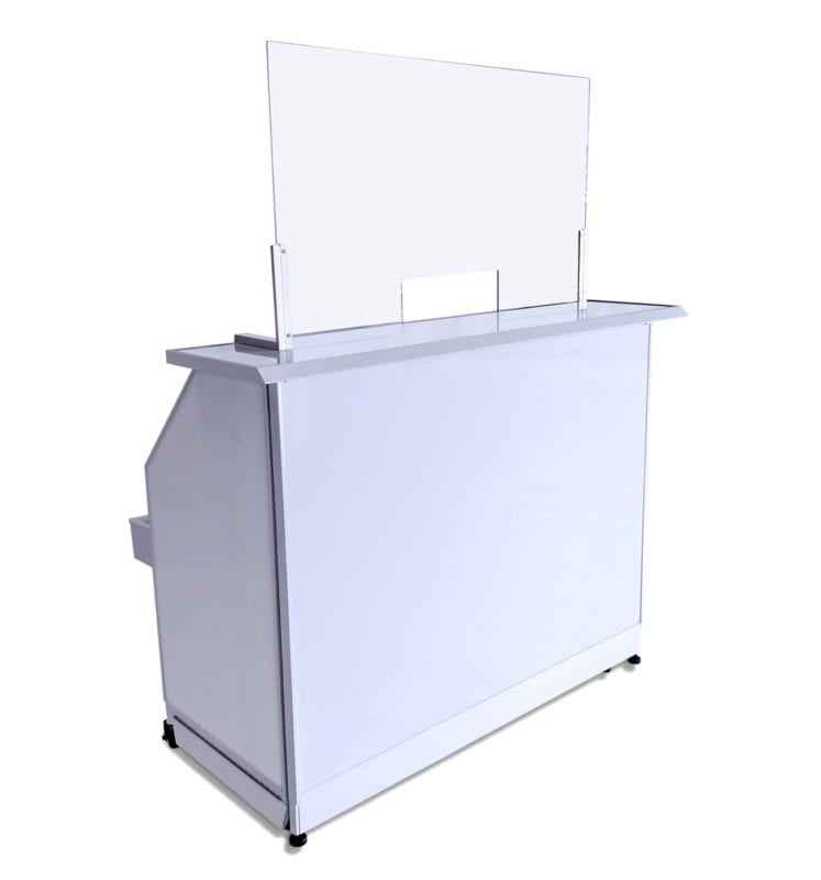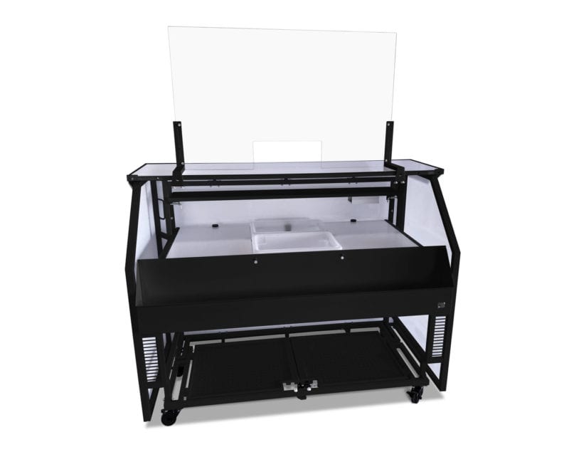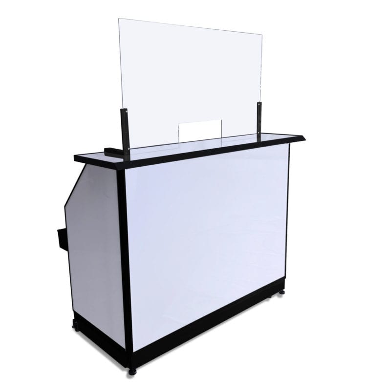This sneeze guard attaches to the Professional Bar and Standard Bar models only. It’s only available in the black or white powder coat finish. It can be retrofitted to models already in the field.