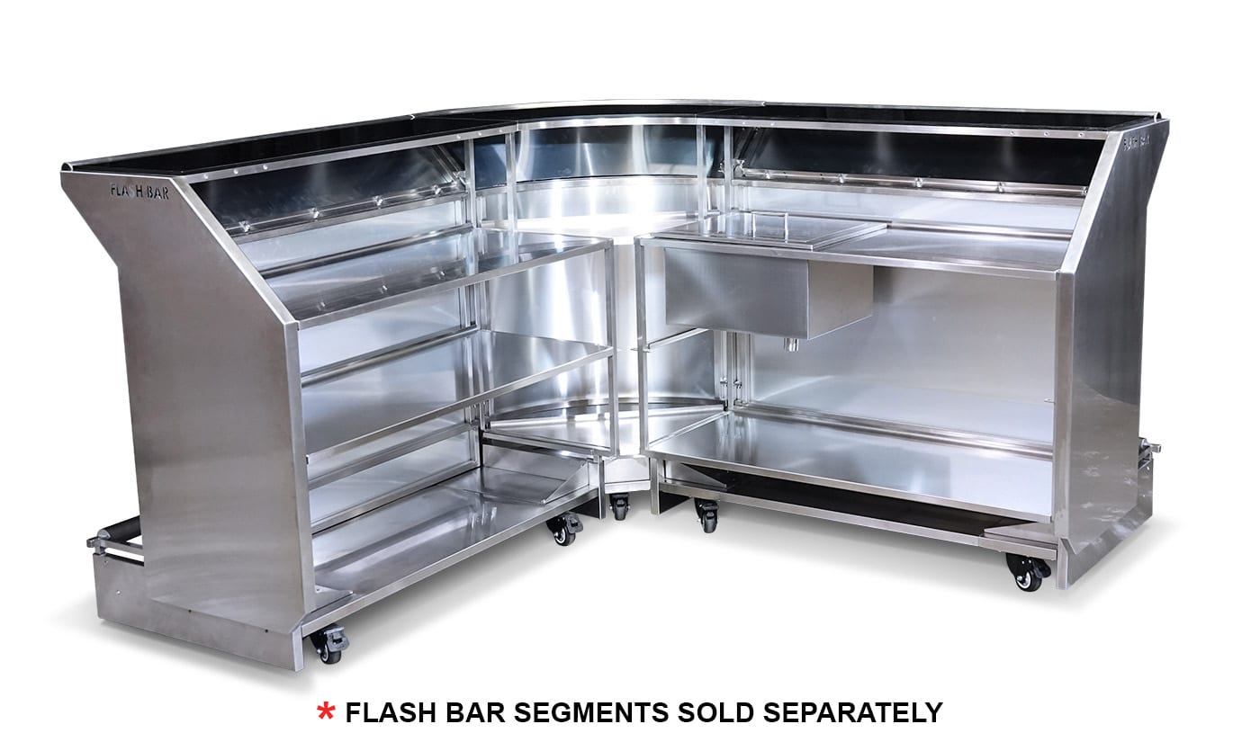 The Flash Bar Wheel Base is ideal for event spaces with an open floor plan and a flat, hard floor such as convention centers, ballrooms, and lounges. With the fully assembled Flash Bar on wheels, any pair of staff members can easily unlock the wheels, move the flash bar, and lock the wheels back into place.