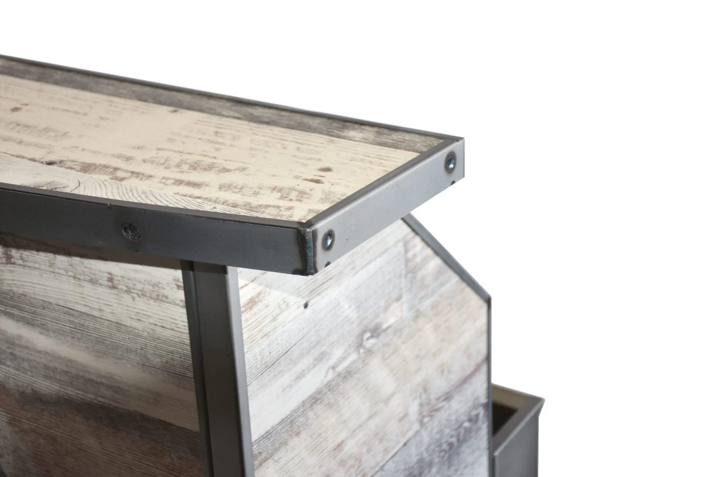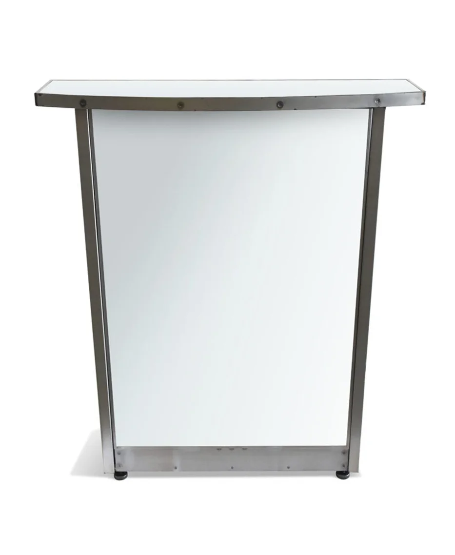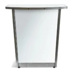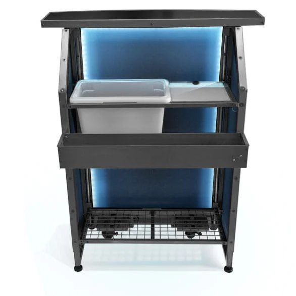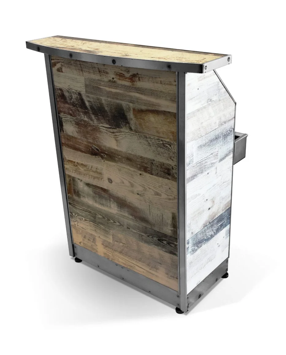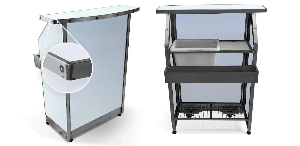 The Rustic Compact Bar is the perfect portable beverage bar for a single person mobile bar tending business. The rustic look will help this bar look just like it fits in at wineries, breweries, tasting rooms, and restaurants because each of these bars is one of a kind. Each bar has unique distress marks in the metal frame giving it a distressed-industrial look. For the panels, we have various custom laminate options, colored acrylic or translucent white. Since the bar weighs 70 lbs, it’s easy for one person to transport. The frame is a clear coated steel and constructed with a tubular design making it lightweight but still durable. Because this finish is unique, it is not recommended for continuous outdoor use and requires proper care and maintenance to prolong the life span of the bar. Outdoor use may degrade the bar frame. Store in a clean, dry place.