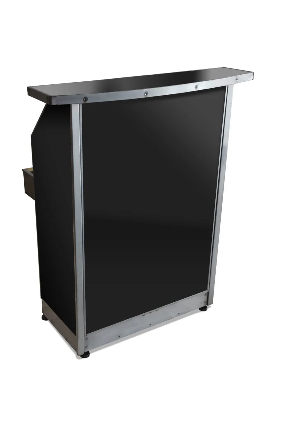 The bar also comes with interchangeable panels that are available in custom laminate, translucent white or colored acrylic. The bar panels are brand-able and the panels slide in and out of the frame (just like a photo slides into a picture frame) allowing for quick signage installation.