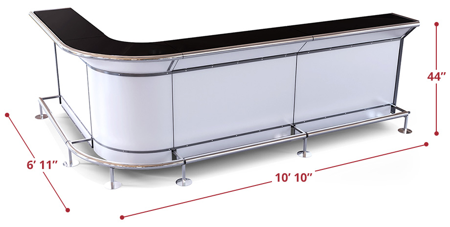 Available add-ons for the L-shape Bar include LED lights, sinks, and speed rails.