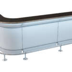 The L-shape Bar comes standard with acrylic panels, which are suitable for outdoor use. Optional textured vinyl print panels offer the look of wood or marble for outdoor use. Optional laminate panels are designed for indoor use with over 600 natural, industrial, and pattern finishes available.
