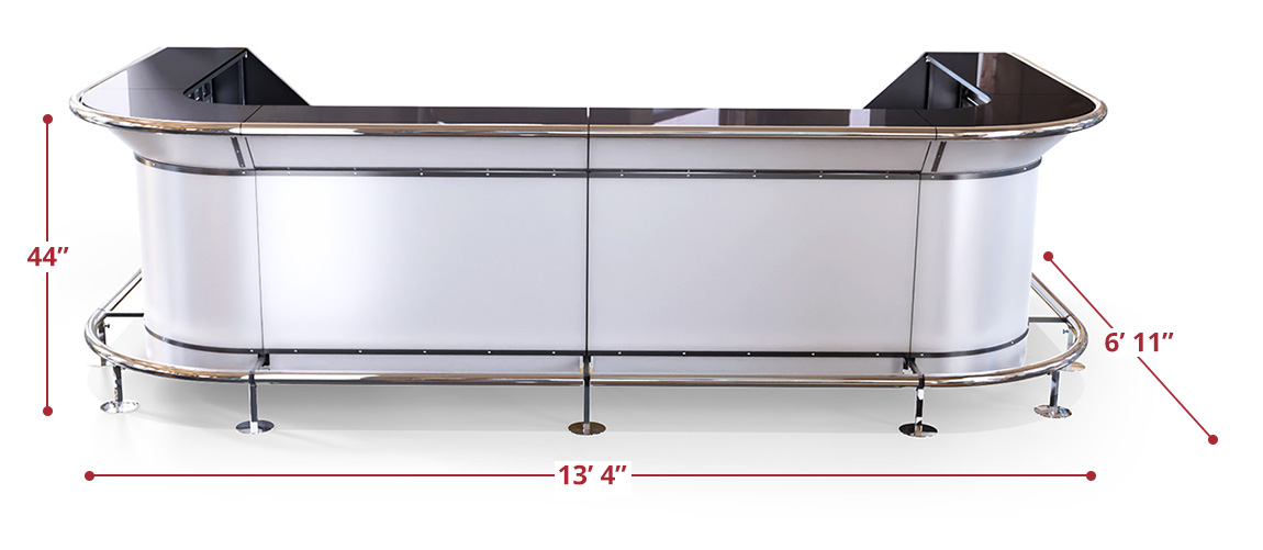 The U-Shape Modular Bar is spacious without taking up a lot of space in a venue. It provides 20’ of counter space with a 13’4” x 6’11” footprint, and its six segments can be used in smaller groups or individually.