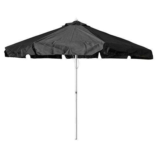 Our 7.5′ umbrellas that feature vibrant polyester canvases in black, blue and maroon. Their durable aluminum poles and fiberglass ribs are designed to outlast traditional wood umbrellas.